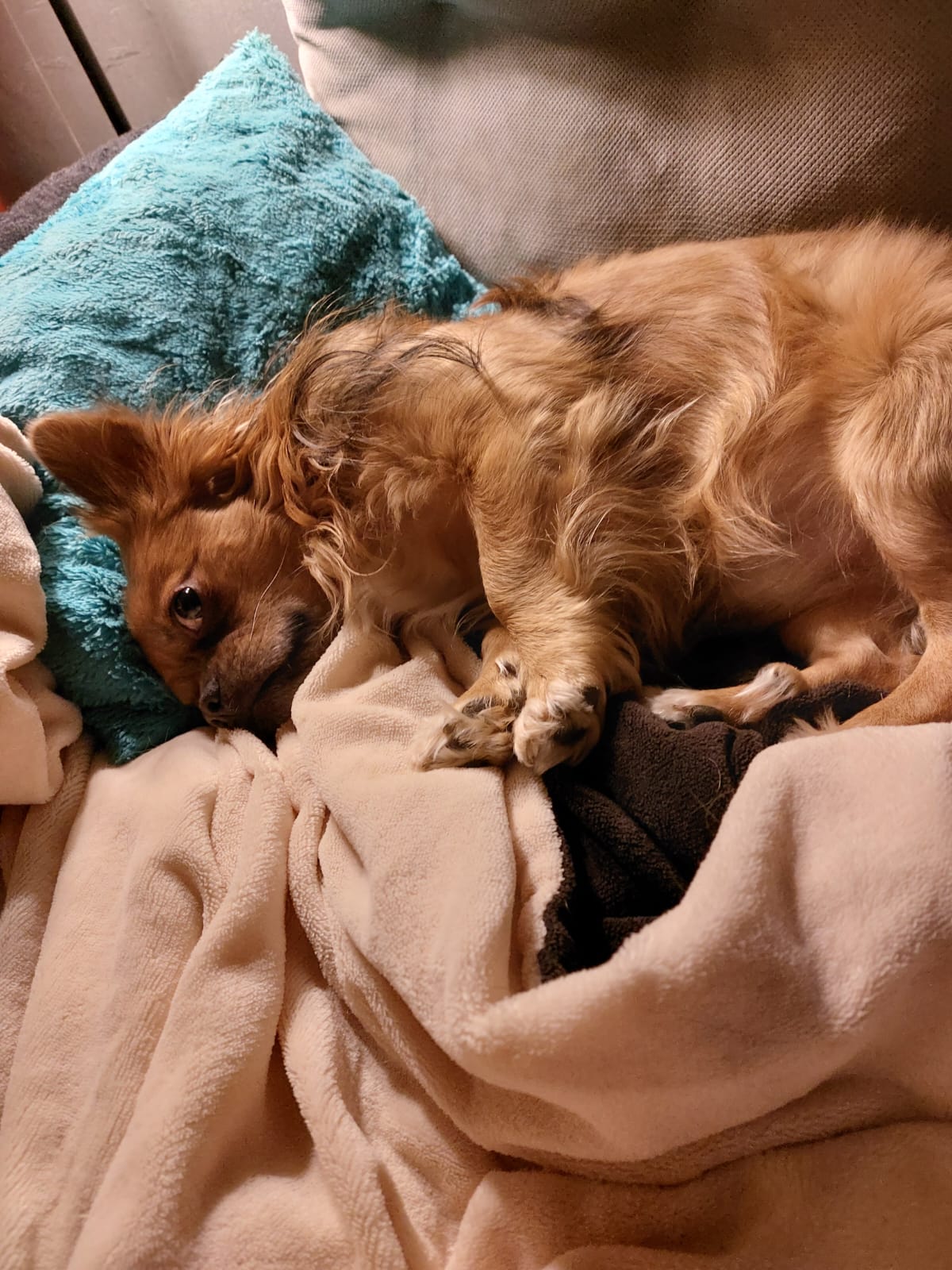 Er kam als Welpe zu seinem Frauchen und würde geliebt und verwöhnt.